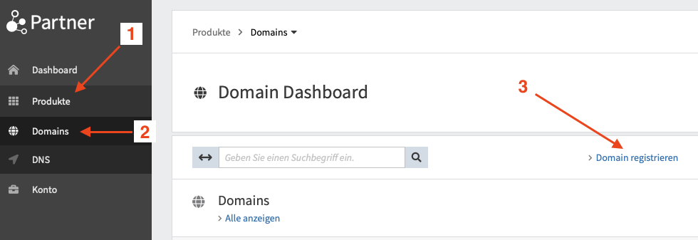 Wenn Sie Domainreseller sind, dann können Sie Ihre registrierten Domains direkt in Ihrem Domain-Partner-Zugang bestellen.